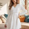 Female Sleeveless Spaghetti Strap Hollow Out Dress with Drawstring