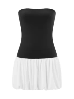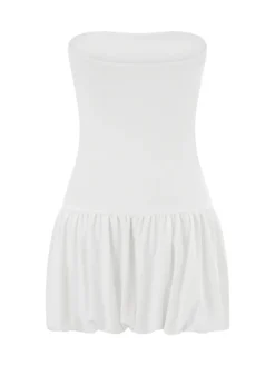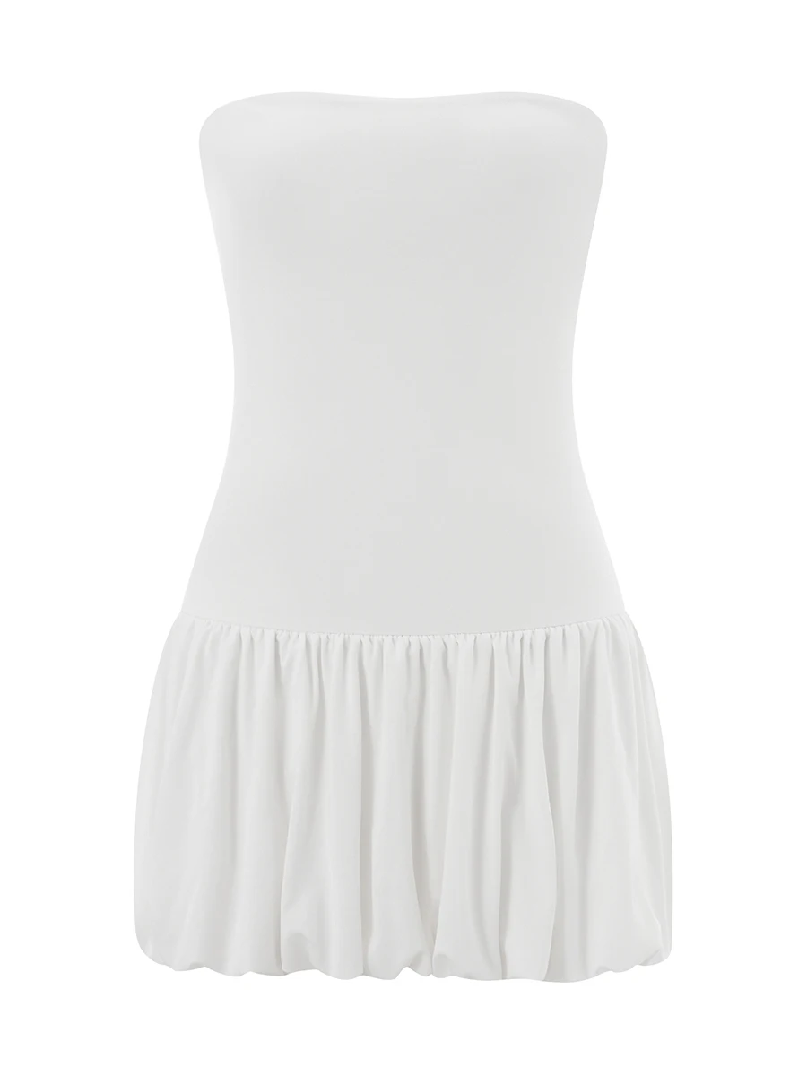 Women Strapless Mini Dress Summer Solid Color Puff Bubble Party Dress for Cocktail Beach Streetwear