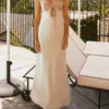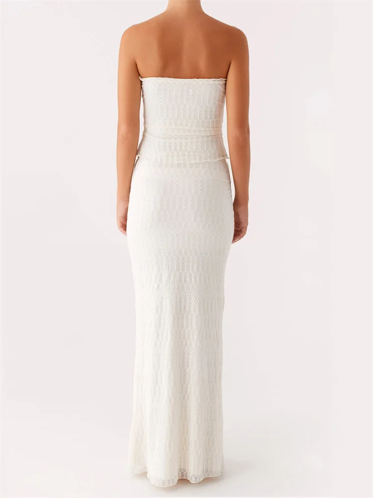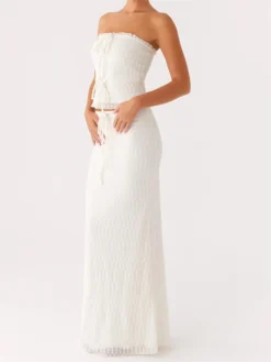 Summer outfit for women in solid colors; Women’s bandeau with drawstring front, strapless, crop length; Women’s skirt with elastic waist and drawstring, ankle length to show off your charming curves
