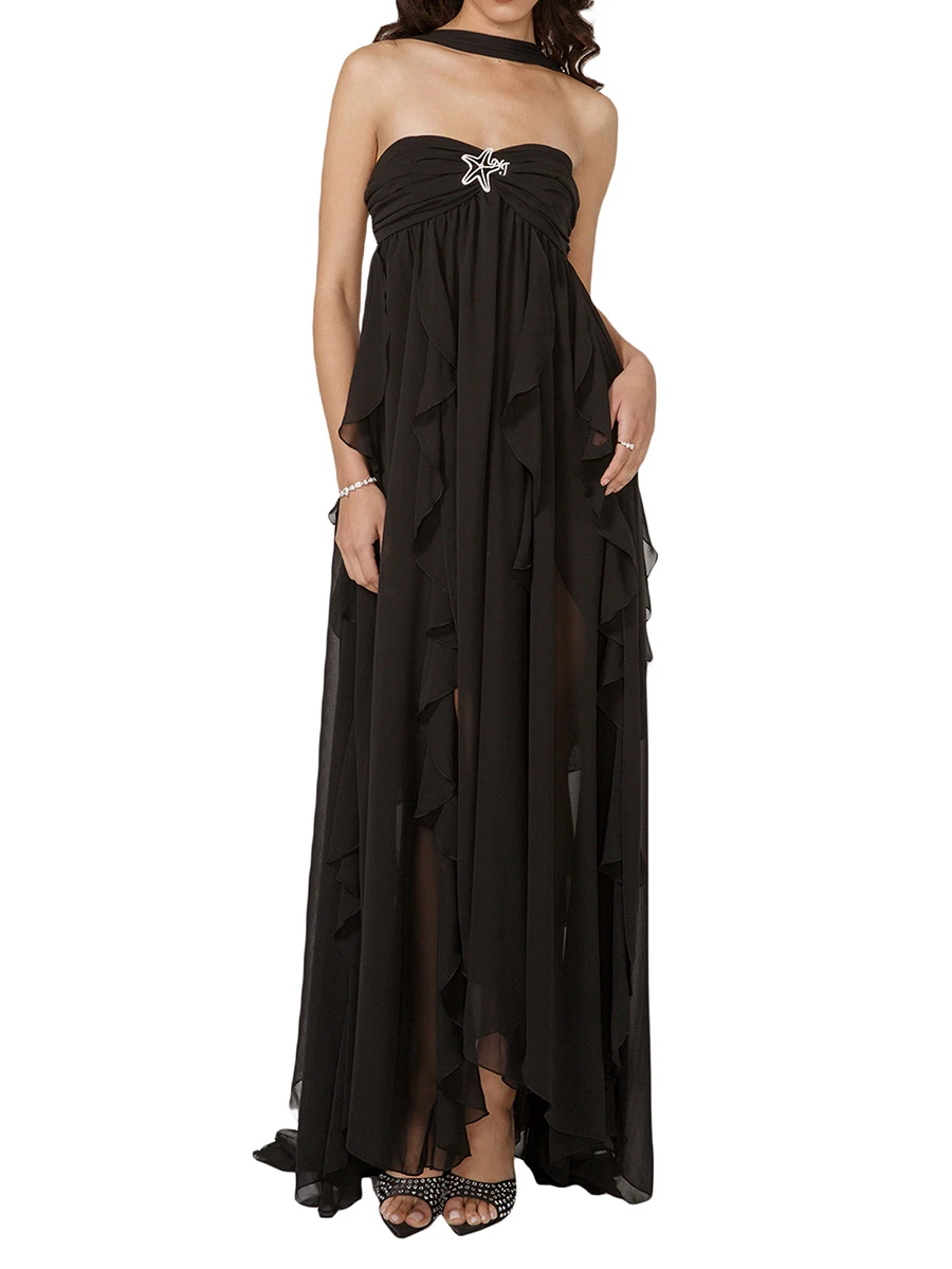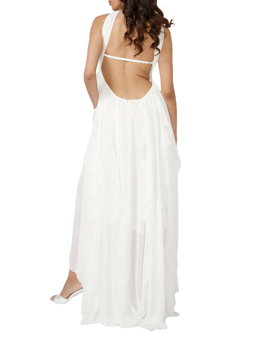 Women Summer Sleeveless Dress Irregular Ruffle Hem Backless Cocktail Party Dress for Beach Club Streetwear Elegant Fairy Clothes